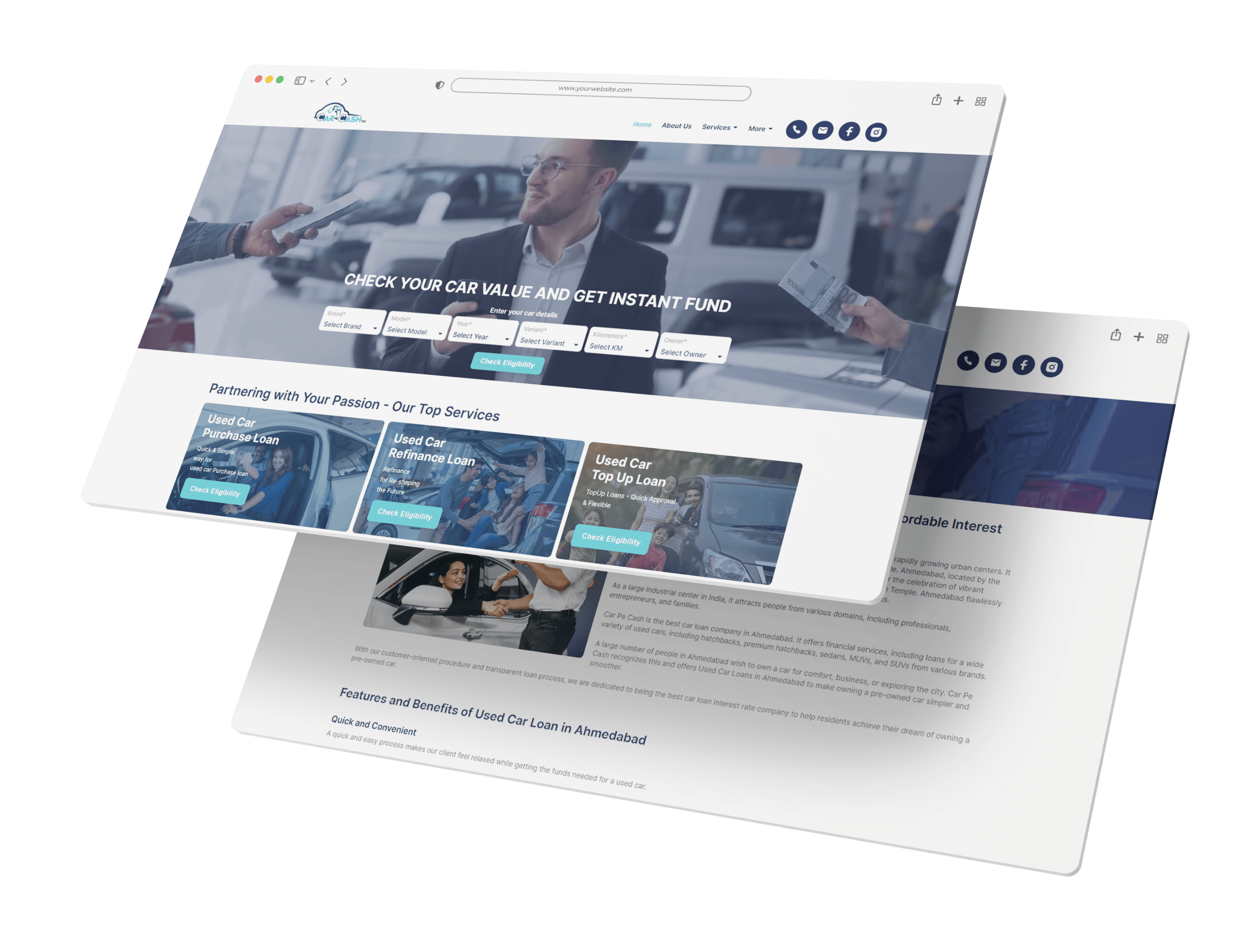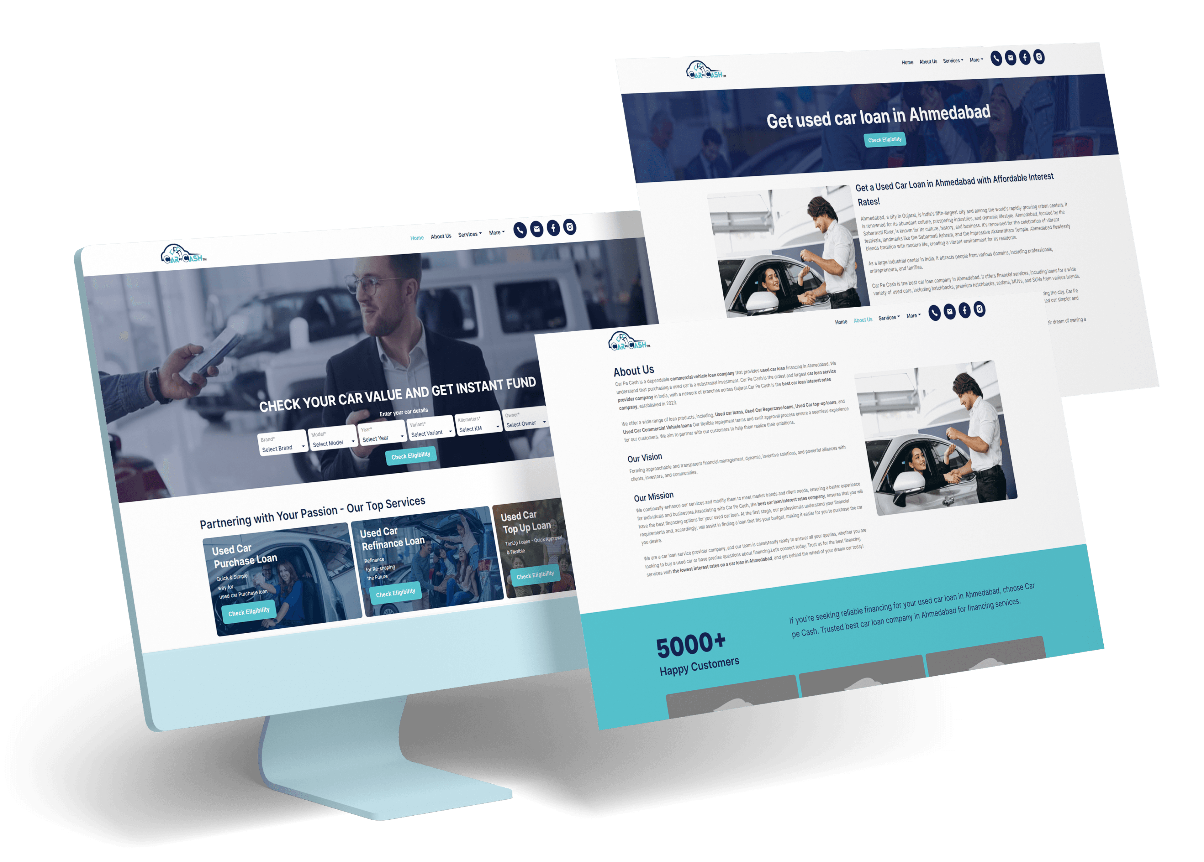 Our client, Car Pe Cash, is a leading commercial vehicle loan company in Ahmedabad, specialising in used car financing. Launched in 2023, it is India’s oldest and largest car loan provider, having branches across Gujarat. Car Pe Cash offers several loan products, along with used car loans and top-up loans, with flexible terms and fast approvals. The prime goal is to help people achieve their car buying goals with the best interest rates and customer service.