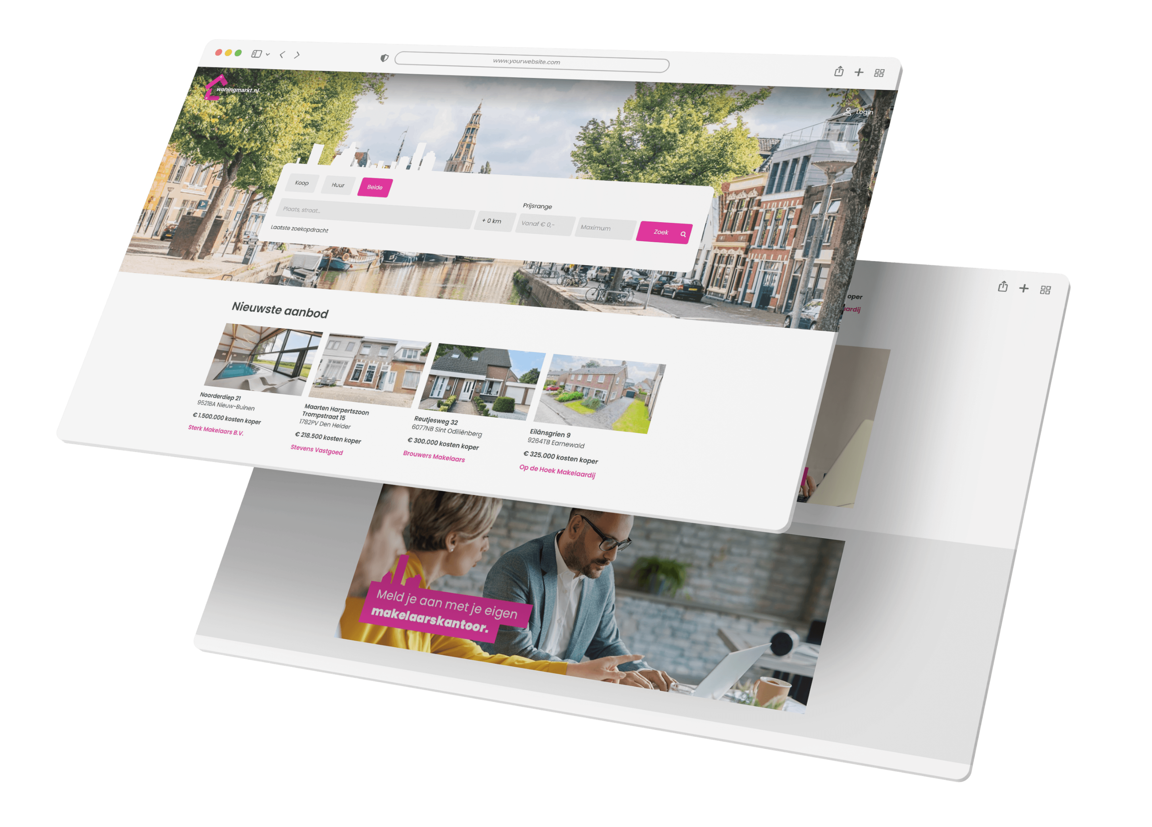 Woningmarkt.nl is an advanced technology online platform that connects buyers, sellers, tenants, and landlords. Its specialty is that it brings together supply and demand in a user-friendly way, regardless of industry affiliation. Both small brokers and large chains can list properties here. Launched in May 2023, Woningmarkt.nl is continually improving and expanding.